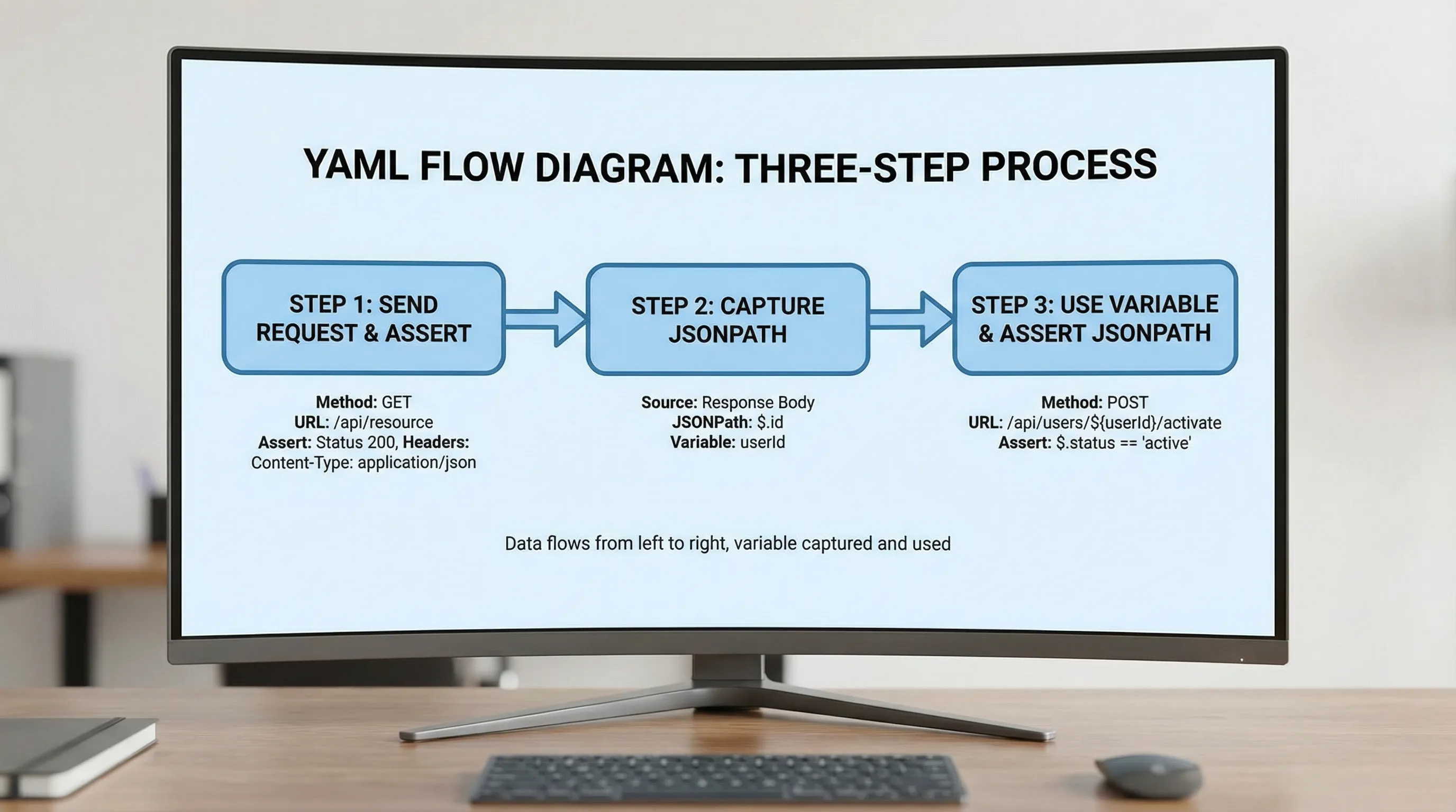 API Assertions in YAML: Status, JSON Paths, Headers, Timing Thresholds