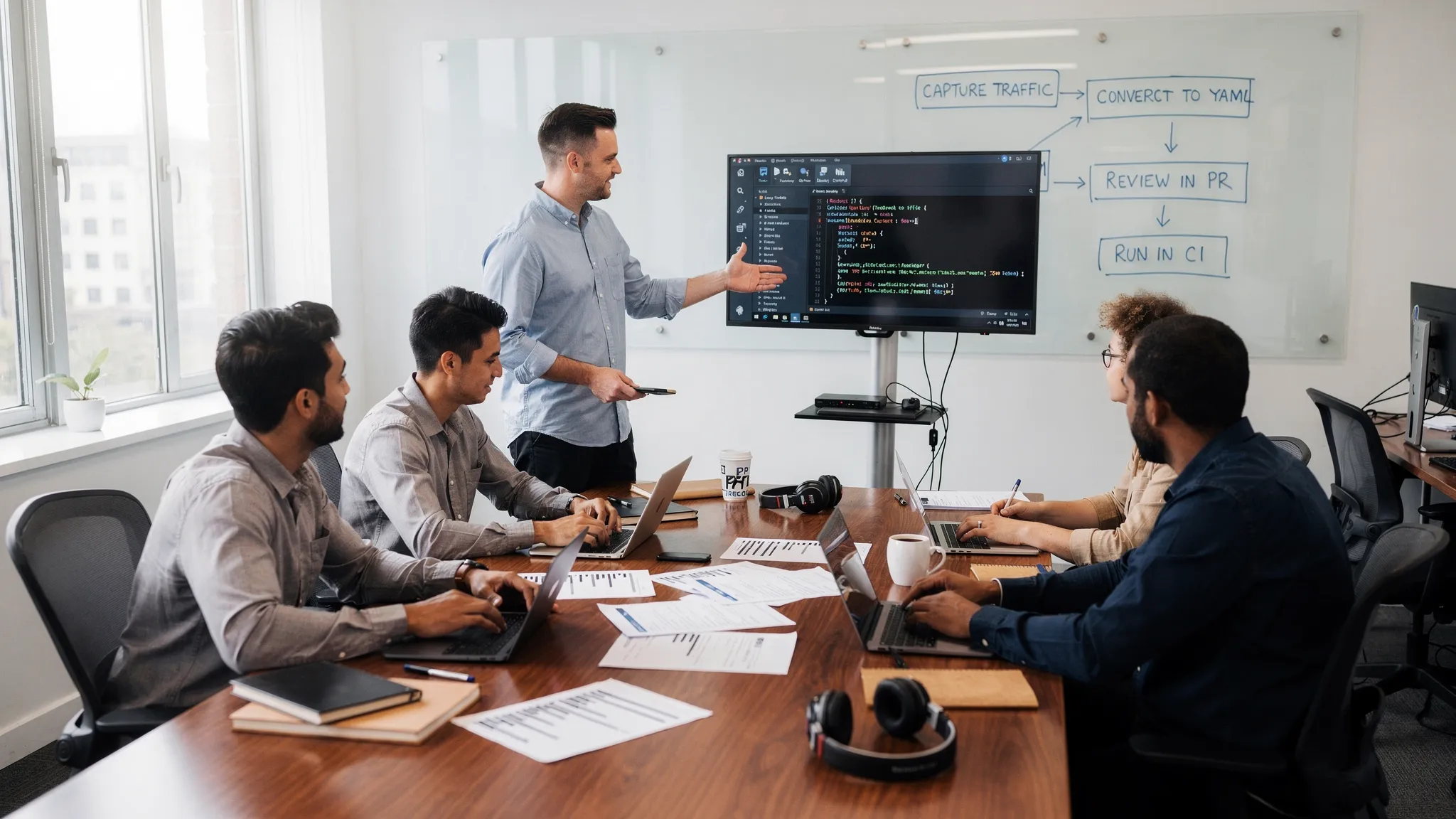 Build a Git workflow for YAML API tests with required PR checks, JUnit reports, and merge rules. Keep merges deterministic with CI-native, reviewable flows.