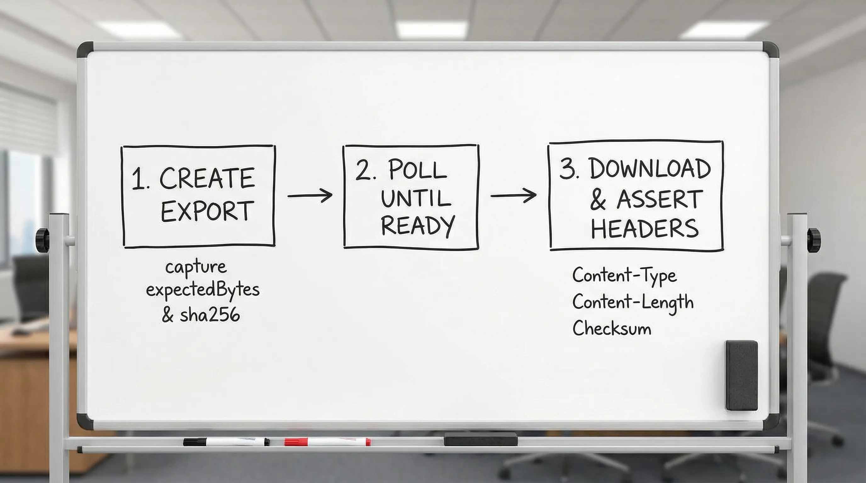 - Convert implicit chaining into explicit captures (export ID, checksum, expected bytes).